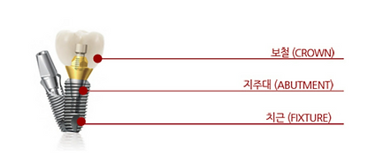 Abutment 지주대 : 인공치아와 임플란트 사이를 연결시키는 구조물